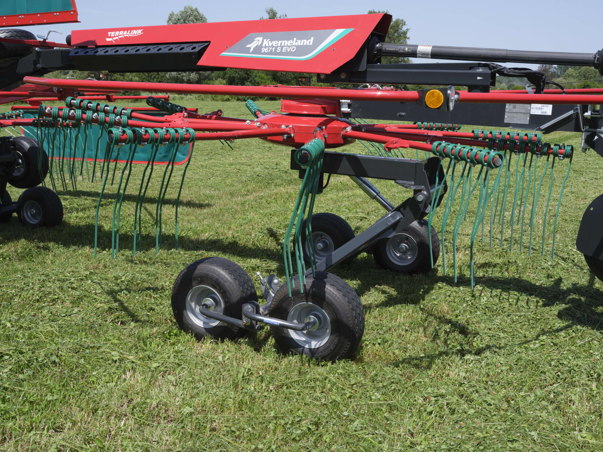 The machine impresses with its incredible flexibility and compact transport dimensions. It is possible to rake a large swath with the machine or to make two small swaths with the machine. The machine is ideal for small, uneven, and hilly fields, thanks to its clever design and TerraLink ground contour-following system.
